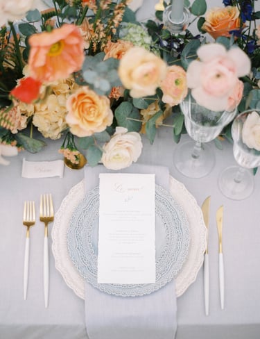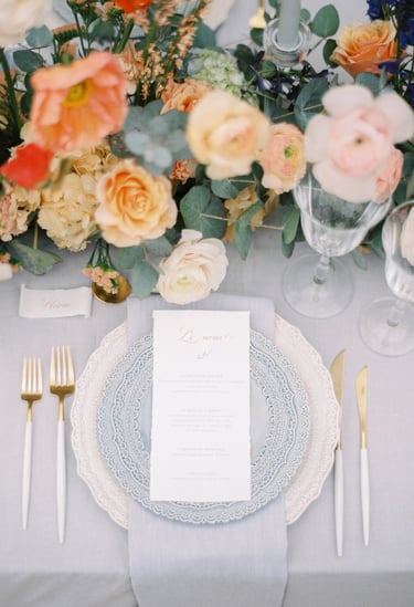 Personnalisation du Menu : Adaptez le menu au thème de votre mariage, que ce soit un élégant dîner parisien ou une réception en Provence.